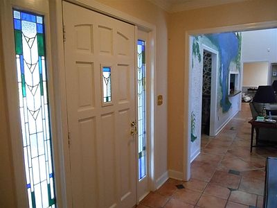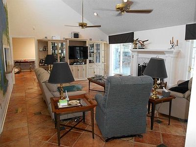 Amazing home. Tile floors, maple hardwood floors in bedrooms, vaulted ceilings in most rooms, master bedroom has huge bathroom with walk in shower with multiple shower heads. Extra master bedroom on opposite side of home with sitting area and private bathroom. Walk in wet bar adjoins the great room, Granite countertops in kitchen and laundry room. Circular driveway with a large parking pad plus a triple garage. Waterfront lot with dock. Outside kitchen plus a tri-level heated pool with spa and waterfall. Terminix termite bond, outside storage, sprinkler system draws water from the lake, Metal roof, gas fire pit in backyard, stained glass windows, walk in closets, skylights, and many more extras. Exterior siding is a mixture of painted plywood, painted wood board and painted concrete fiber (Hardie Board type) siding. Home must be seen to be appreciated. For the month of June, 2014 the power bill $219.47. Water bill $34.76. Gas bill $40.64. HOA are voluntary, no lake dues, some personal property negotiable.