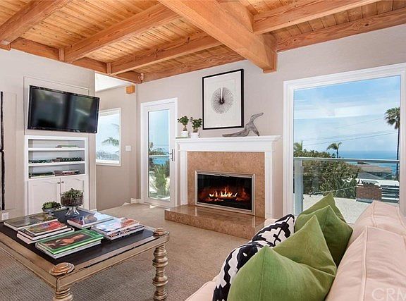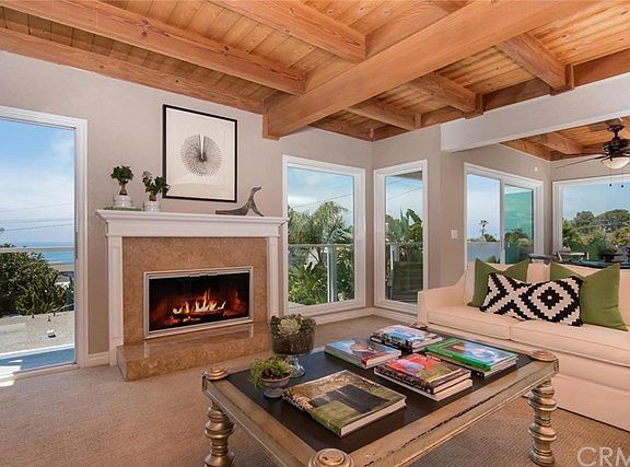 This 2Bd + Office/Den, 3Ba home boasts sit-down panoramic Catalina and San Clemente island views. Work from your home office, or create a nice den/reading space, or easily convert it into a 3rd bedroom. With exposed wood beamed ceilings, the main level contains the living room, dining area with viewing deck, kitchen with granite, stone and stainless steel appliances, office and full bath. The entire upper level is the master suite with 180 views and sun deck, walk-in closet, and travertine tiled bath. Relax in your soaking tub while soaking in the views. The lower level provides a separate entry to an en suite 2nd bedroom and access to the over-sized 2-car garage with storage, laundry and a work bench. This home offers coveted parking for up to 7 cars. You can leave your cars at home and within several blocks enjoy: restaurants, beach access to 3 beautiful beaches: Table Rock, West Street and 1000 Steps, 4th Street Community Garden, Village Green Park, a great hiking trail off Valido Road, and the trolley stop is at the end of your street. Take the trolley to dip in to the action of downtown or the Ritz Carlton, and then return to your tranquil home. South Laguna Village offers a quick exit out of town via Crown Vly, to avoid the downtown traffic tangle.