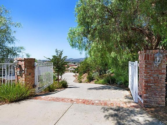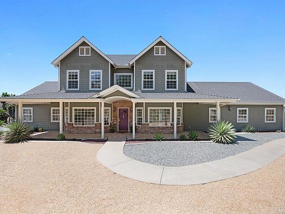 Experience the Ultimate Country Living from this gated 5 bedroom, 4.5 bath home, situated on an expansive 2.64-acre lot with spectacular panoramic views in the rolling hills of Bonsall! Relax near the disappearing edge, heated pool and spa while enjoying an ocean breeze! This stunning property offers a peaceful and secure setting, with low-maintenance landscaping, a motocross track, and a mining scene, which adds to the many features of this breathtaking estate. Nothing compares! Boasts nearly all useable acreage, making it perfect for a nice vineyard, horses, and lots of space to park RV's, motorcycles, dirt bikes, boats, you name it! This property will have the room for it all! A floor plan designed with warmth and beauty. As you enter, you are greeted by a spacious, two-story foyer with stunning wood staircase and a gleaming hardwood flooring. Open from the entry hall is a formal living room to your left, and formal dining with country views to your right. The dining room leads to a chef's dream kitchen, featuring stainless steel appliances and wood shaker-style cabinets. Corian counters accommodate bar stools, an eat-in counter, a granite-topped island with a built-in wine rack and more cabinet space. Adjacent to the kitchen is a spacious, light-filled family room with high ceilings, a brick fireplace and a casual dining area with bay windows overlooking the pool area and beyond. Continuing into the home you will find an oversized Primary suite, featuring views of the fabulous pool and the countryside. A private ensuite provides a dual vanity, jetted tub, shower, and a large walk-in closet. The main floor also includes an office, mudroom, laundry room and a half-bath. On the second level, there are 3 additional bedrooms with ceiling fans and 2 complete bathrooms. In addition to central air conditioning this home has a whole house fan, a central vacuum system, and a whole house surge protector. One-car oversized garage has been converted into an ADU with a complete bathroom and a private entrance accessible through the pool area which is perfect for guests or rental income. The attached 2 car garage has a pull-down ladder leading to a very large storage. The outside space is highlighted by a spacious cover patio with concrete decking, sparkling heated pool & spa with a water fountain feature and a large built-in smoker will have you entertaining your guests in style. It's time to rev up your life and make this incredible home yours! Come take a look at this one-of-a-kind property!