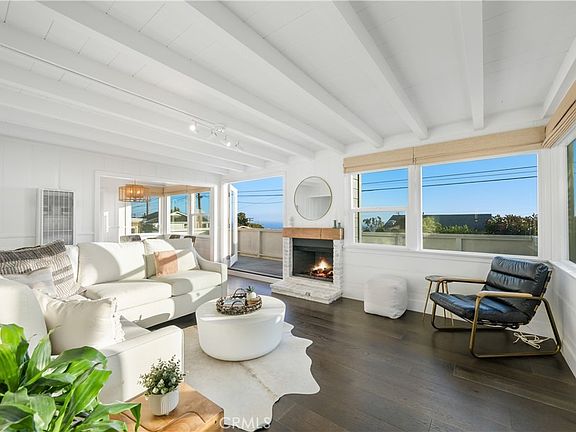 Experience coastal elegance redefined in this South Laguna cottage, where classic coastal charm meets impeccable modern updates. Sweeping ocean and Catalina Island views provide a breathtaking backdrop for the main living level as well as the wraparound porch. The efficient layout, full of ocean breezes, spans approximately 1,136 square feet of elegantly renovated space. The 2020 reimagining of the interiors resulted in a charming yet sophisticated retreat, with new flooring, completely reimagined bathrooms, updated cabinets, built-out closets, and designer lighting fixtures. The overhaul extended into the kitchen with ample storage and a suite of stainless steel appliances, while new tile refreshes the space. The primary quarters on this floor, with a new mini-split, are private and peaceful: a quiet oasis. On the lower level, the secondary bedroom plus office space with a shared bath benefited from light use since the renovation and offer exceptional multi-functionality. Both the interior and exterior wear fresh coats of paint. Additional whole house upgrades include a full repipe, new roof, water heater replacement, and upgraded windows. This is a rare opportunity to own a meticulously cared-for view home marked by a perfect blend of timeless charm, modern luxury, a fantastic location, and unparalleled views.
