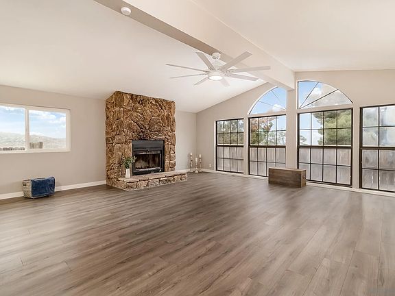 Opportunity to own your own piece of land of almost 4 acres with over 2k sq ft of living space. Enjoy peace and tranquility with only a few neighbors around while relaxing in your very own pool. Look out on the expansive views of the valley on the deck with a built in ledge for drinks to take in the scenery. Large windows in the living room allow for lots of natural light, and the vaulted ceiling also makes this even more spacious feeling. Additional upgrades include a brand new roof, new flooring, new vanities, new furnace & A/C, and even some new windows. All while the home has had a fresh coat of paint throughout. This property features a detached barn which allows for more storage or even potential additional living space! If you ever wanted to enjoy that rural life but still be close to places, this is it. It is only about 7 miles from the 215, and only a couple miles from the local high school.