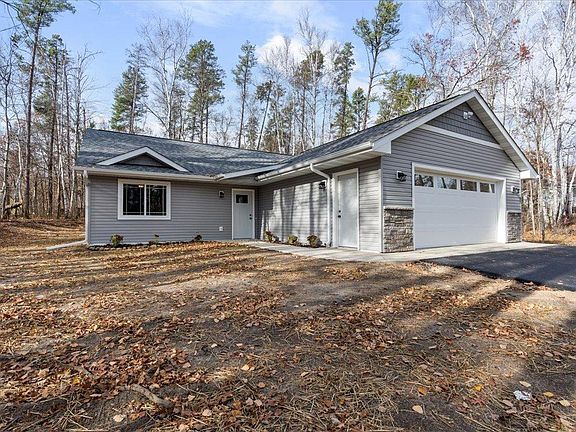 New Construction! Come take a look at this 3 bedroom, 2 bathroom home with stone accents. The blacktop drive and seeded yard add the finishing touches on the half-acre wooded lot. Inside you'll find a bright inviting open floor plan with vaulted ceilings, custom cabinets, granite counter tops, stainless steel appliances and central air. The owner's suite has a private bathroom with a custom tile shower and large walk in closet. Step out to the backyard and unwind on the concrete patio and open backyard with plenty of room for entertaining. Let's not forget the heated, finished garage with floor drain with windows for natural light. Located in a great neighborhood, minutes from the freeway, golf, lakes, and many year round activities!