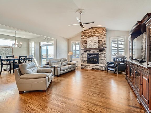It's a good thing a picture is worth a thousand words...there's not enough room to describe all the features of this 4 bed/3 bath walkout ranch w/fully-finished basement. Enjoy the large front porch & wide entry into the home. Awesome kitchen w/island, high-end stainless appliances, granite counters, gas stove, soft-close drawers, pullout shelf extensions in all bottom cabinetry, built-in trash drawers. Kitchen opens to great room w/vaulted ceiling, stone-faced gas fireplace/hearth. Master suite w/luxury 5-piece & walk-in closet. Large secondary bedrooms + full bath for family/guests. Laundry/mudroom combo w/plenty of storage, utility sink - even an appliance garage. Super-open basement w/nearly 2,000 square feet for WHATEVER your heart desires. Elegant 3/4 bath with waterfall showerhead, bench & handheld (think dog washing). Family room w/floating, built-in IKEA entertainment center, kitchen area w/granite counters, farmers sink & soft-close. Refrigerator stays. Conforming bedroom, storage behind the barn doors, by the bedroom & in the bedroom. Enjoy the Colorado outdoors from the low-maintenance, composite deck or the expanded patio. Plantation shutters throughout the main floor. Hardwoods in foyer, kitchen, dining and great room. Carpeted bedrooms and stairs, and Coretec waterproof LVT in the finished basement. 4-car, oversized garage, and here's a surprise...with a lift that stays. Cabinets stay, too. Make the 1,350-sf outbuilding your ultimate MANCAVE. Styled and designed to match the house, this insulated, drywalled, textured and painted surprise has 16-foot walls, a 14-foot door to accommodate and RV and a 9-foot door. Both doors are insulated. Epoxy floor finish. 220 in outbuilding and garage. Upper electrical in outbuilding was intended for future loft. (Outbuilding & basement finish completed by Jeffrey Homes in 2018). Concrete walkway from garage to lower patio. Continued paved driveway to outbuilding. Fully fenced and gated. This is a very special home.