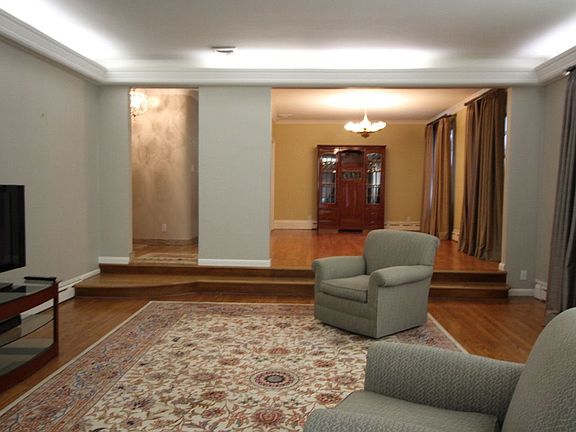 Rare finding, one family, immaculate center hall. Walk right into sunk in living room & dining room with wood floors throughout. Elegant eat in kitchen with granite counter. Ultra modern half bathroom. 2 large bedrooms with exquisite master bath. Custom closets upstairs, features 2 more bedrooms & 3/4 bathroom. Unique basement offers entertainment room,bar, bedroom, family room, pesach kitchen,half bath & laundry room. Lots of walking closets & ceder closets, plus private parking.