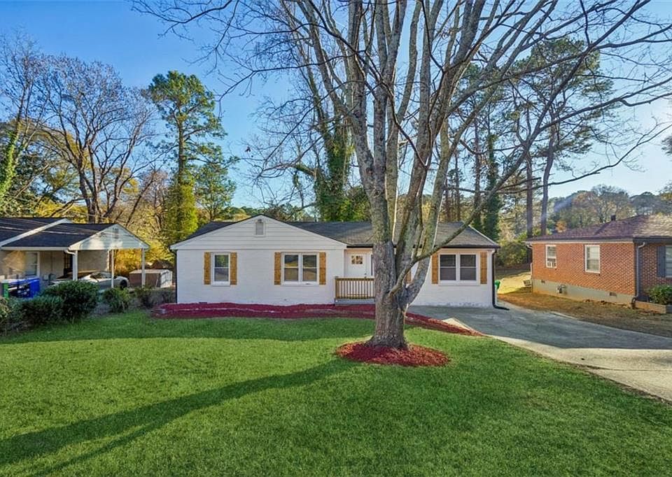 Nestled on a quiet, established street in the Birdsong neighborhood of Belvedere Park, this beautifully renovated white brick ranch offers a refined blend of modern design, thoughtful upgrades, and exceptional intown convenience just minutes from Downtown Decatur and Avondale Estates. The light-filled, open-concept layout showcases all new hardwood flooring, and a showpiece kitchen featuring stone countertops, custom white cabinetry, stainless steel appliances, designer tile backsplash, statement lighting, and a generous island ideal for everyday living and entertaining. A desirable roommate-style floor plan highlights a serene primary suite with a walk-in closet and spa-inspired bath complete with double vanities and an oversized glass shower, while additional bedrooms, provide flexible space for guests, home office, or playroom. Outdoors, enjoy a long, flat driveway for ample parking, a fully fenced backyard, and two expansive decks that are perfect for hosting gatherings or relaxing amid the mature landscaping that once earned national recognition as a private urban oasis. The comprehensive and complete 2025 renovation includes all new everything (floor plan, windows, HVAC, water heater, lighting, electrical and plumbing systems, flooring, and more) delivering truly move-in-ready peace of mind. Centrally located with easy access to I-20, I-285, MARTA, bus lines, walkable shopping, parks, farmers markets, award-winning dining, breweries, festivals, and nearby charter schools, this stylish modern ranch offers privacy, community, and connectivity in one exceptional Decatur-area home.