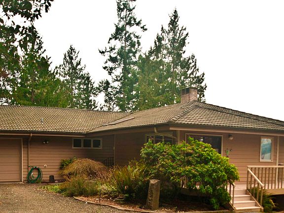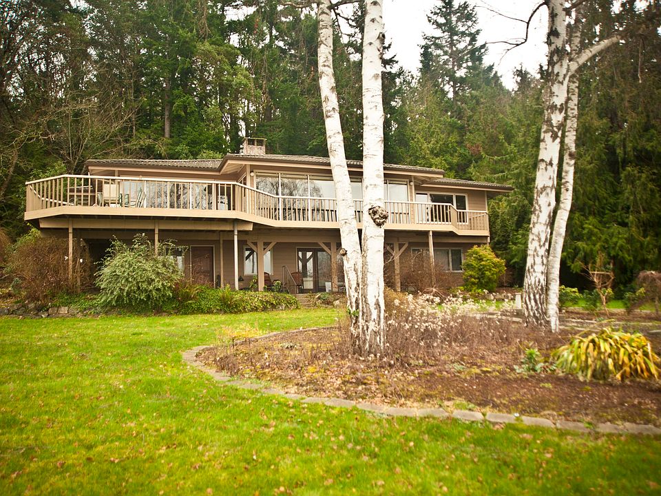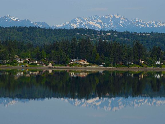 136' of low bank waterfront and spectacular sunset view of Olympics. Spacious home with gourmet new granite-topped counter kitchen, large master bedroom ensuite and huge mb walk-in closet, den, extra large util room off master closet, large open dining room to expansive living room all with views. Downstairs complete 2 full bedrooms and 2 baths - huge rec room or office, 1 studio or office, huge storage or work room. Concrete steps from low bank to beach. Clams/oysters. Park-like setting.