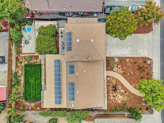 Desirable area, Livermore wine country gem. 5 bedrooms 2 bath, gigantic sunporch, spacious kitchen w/ window garden & entry into the private flat backyard with possibilities for pool, Bocce Ball/sports court or huge garden. New drought tolerant easy to maintain front yard welcomes you to a large covered front porch. As you enter the home with hardwood floors and good natural light, there is a fireplace & mantel w/ wood burning insert nestled by the stairs. Extra large attached 2 car garage with built in workshop & storage. Plus a large tough shed with windows. Imagine living w/ an open floor plan, 2 downstairs bedrooms[one being used as an office] and welcoming enclosed sun porch in your dream home. Enjoy relaxing on deck outside of upstairs master suite. Great location near the library and numerous wineries and dining. OWNED SOLAR. Offers Aug 31st 2 pm