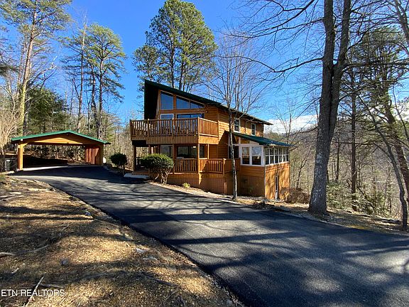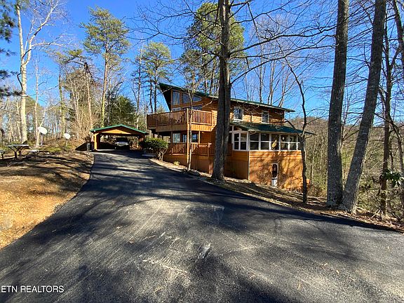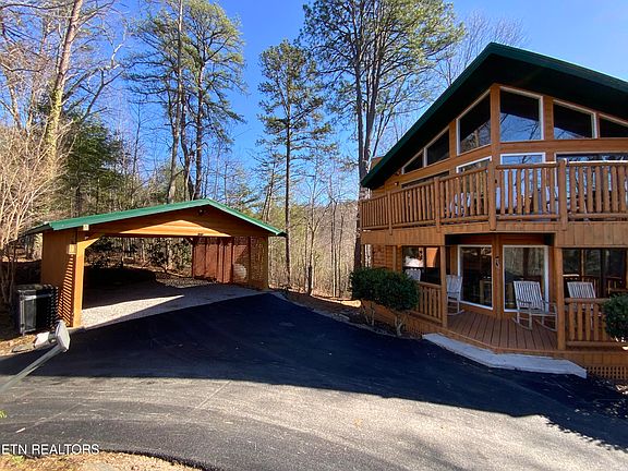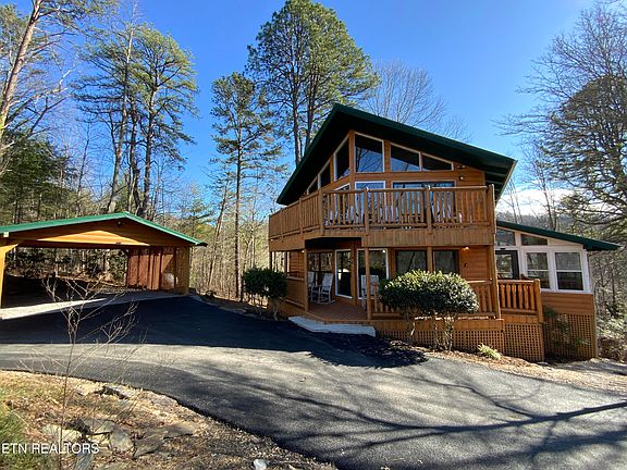 PRICED TO SELL!! Amazing 3-BR 2.5-BA Rental Cabin for sale. This Cabin has 2772 sq. ft. of living space located in beautiful Shagbark Gated Community. This property was REMODELED in 2017 with new exterior log siding, wood flooring, knotty pine walls, metal roof, interior paint and hot tub. Recent updates include New PAVED DRIVEWAY, well pump and pool table felt. Enjoy an open concept in this Cabin with a LARGE GREAT ROOM with beam ceilings, beautiful stone gas fireplace, wood flooring and lots of windows for natural light. The KITCHEN is open to the DINING ROOM and has lots of cabinetry, stainless steel appliances, granite counter tops and large bar with extra seating. LARGE MASTER BEDROOM with en suite bath and half bath on the Main level. Travel UPSTAIRS to enjoy an additional LARGE LIVING SPACE with lots of windows to enjoy SEASONAL MOUNTAIN VIEWS, wood flooring, and large stone gas fireplace. Two additional SPACIOUS BEDROOMS and shared bath are located on the second level. The basement level has a large GAMING AREA and LAUNDRY AREA. Take a dip in one of the TWO HOT TUBS or relax on one of the 3 LEVELS OF DECKING to enjoy a peaceful serene setting. Lots of level area, AMPLE PARKING and a COVERED CARPORT. Enjoy all the wonderful AMENITIES that Shagbark has to offer including gated entrance, on-site security, pool, pickle ball, tennis, basketball, fitness trail, dog park, frisbee golf, playground and picnic pavilion. Located only 15 minutes from the center of Action-Packed Pigeon Forge. The property is currently used as an OVERNIGHT RENTAL. Come make this your Home in the Smoky Mountains!!!