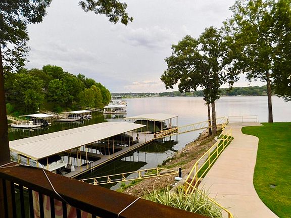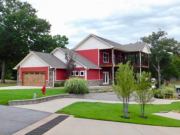 Just outside Grove OK on popular Honey Creek Arm of Grand Lake-Waterfront home 3 bed/3.5 bath, open living, dining, kitchen, terrific lake views, 24'x24'garage. Comes with 32'x14' boat slip in community dock beside home with 30'x34' swim dock shared by 6 homeowners. Many extra features including full foam ceiling insulation, 2 hot water tanks, 2 huge covered decks to enjoy the terrific view from, lawn lake sprinkler, landscaped, stainless appliances incl frig. Cedar decking. Great area for fishing, tubing, kayaking, boating. Quiet new subdivision so close to Grove shopping but feels country. Will look at trades. $250 month HOA dues cover lawn, shoreline, all dock fees including property tax, insurance, electric, city water on dock. Bolt high speed internet available. Great new design