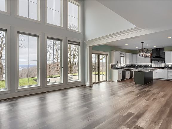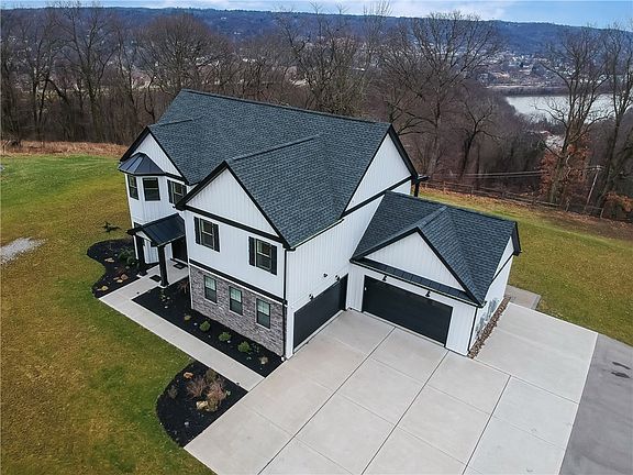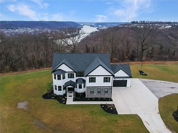 Stunning custom built situated on almost 10 acres w/ priceless river view! The modern aesthetics is designed for today's lifestyle w/ two first floor home offices, gourmet kitchen showcasing superior GE Cafe appliances, chefs' pasta arm, granite countertops & two spacious pantries. The open great room is accented by the floor to ceiling stone fireplace, catwalk and surrounded by the wall of glass windows. Massive owner's suite boasts the private balcony w/ gorgeous views, luxurious ensuite w/ oversized shower, soaking tub, granite double bowl vanity & lavish designed walk-in closet. Convenient second floor laundry with Maytag commercial appliances, granite workspace & laundry tub. Perfect for entertaining on the large stone patio w/ fire pit. Central Vac, solar farm, four car garage, 2 Tesla power walls, 1 Tesla charging station & governors drive complete this home. Convenient location w/ easy access to shopping, restaurants, airport & downtown Pittsburgh!
