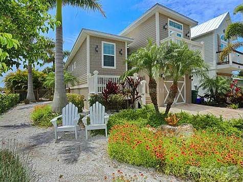Adorable Anna Maria beach house. This 3 bedroom 3 bath pool home offers gorgeous vaulted ceilings and rustic flooring. Beautiful light and toned colors with popping accents throughout make for a bold and beautiful private home. The open floor plan of the kitchen and living room make for a fun area for entertaining. In the living room you'll find chic furniture and a large flat screen television. The main living level master suite offers a bathroom with a second bathroom just adjacent to queen suite. In the upper level suite find a private balcony, and the third bathroom. The separate dining room makes for a more formal meal time gathering, or could be converted into a 4th bedroom to accommodate more guests. The kitchen is well stocked, and offers stainless appliances including a dishwasher. Off the living room and dining room find the gorgeous balcony leading down to the backyard patio with a heated pool, lounge chairs and a cute picnic table for backyard meals. Centrally located this home is easy walking distance to local shops and restaurants. Call today for your private showing.