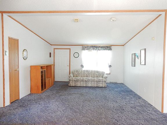 3 Bed 2 Bath Manufactured home on 3 lots. Open space with almost a 1/2 acre with mature trees. Has attached breezeway and oversized 2 stall garage, insulated, finished and heated. Home has large open living and dining area, Kitchen has a breakfast nook with lots of windows.