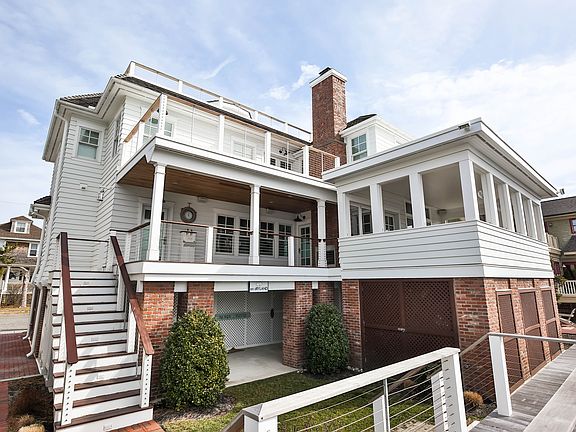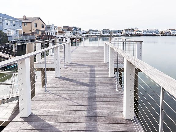 This beautiful Bayfront home faces south west on Snug Harbor and offers high end finishes, an endless amount of deck space, and more storage than you could ever use. Situated on an oversized, 63' x 100' lot, this custom home was completed in 2014 and offers five bedrooms, four full bathrooms, a powder room, and another room that has served the current owners as a sixth bedroom. The first floor entertaining space is elevated about 10 feet above the ground, and allows for beautiful bay views from the living room, dining area, and kitchen. The living area is beautifully finished with floor to ceiling board and batten walls, distributed audio, and a second seating area centered on a gas fireplace. The chefs kitchen features Thermador Appliances, marble countertops, inset cabinetry, and a sliding window above the kitchen sink that connects the interior space to a completely screened-in exterior dining area. The views from the screened-in dining area are extraordinary. Exiting the screened in porch will take you to a large covered deck that features a wood burning exterior fireplace, cedar ceiling, two beer taps, cable railing with a mahogany cap, and distributed audio. An exterior stair leads down to an enormous fixed pier over the water, finished with Ipe deckboards and encased by cable railing. The bulkhead was replaced in 2014 and is vinyl wrapped. Two boat slips surround the fixed pier. Back inside, the first floor is rounded out with a large laundry room, a bedroom with an en-suite bathroom, the aforementioned sixth bedroom, and a beautiful powder room. The second floor features four bedrooms and three bathrooms. Two of the bedrooms, including the large master suite, offer en-suite bathrooms. The other bedrooms, both large in scale and with bead board ceilings, share a hall bathroom. The second floor deck offers expansive bay views and is a great spot to enjoy the afternoon sun. A spiral stair leads to the third floor, which offers a small office and access to the third floor deck, where you will find long spanning southern and western views and the perfect place to watch the sun set each evening and Friday fireworks all summer long. The entire ground level of this very special home is garage / storage, and offers plenty of room for all of your beach and bay toys. Some other unique features include two tankless water heaters, melamine closets in each of the bedrooms, hickory floors throughout, and mahogany front and garage doors. The location of this special property is extraordinary, as the home sits just 2 blocks from the beach and 5 blocks into the center of Stone Harbor's restaurant and shopping district. Don't miss your opportunity to preview this very special home.