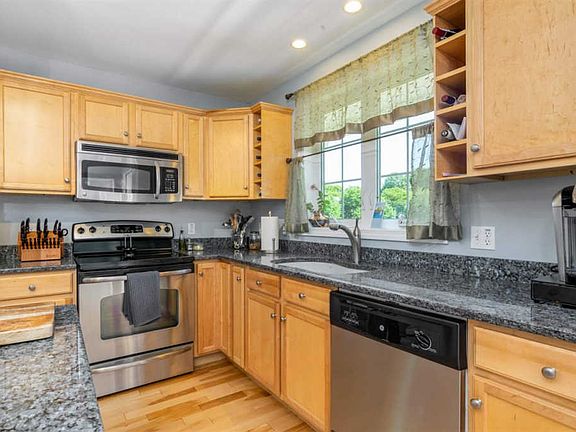 Immaculately maintained 2 bedroom, 2.5 bath townhouse located in the sought after Farmington neighborhood in Colchester. Gorgeous kitchen with granite countertops, deep cast iron sink, large island with break bar, stainless steel appliances and hardwood floors. Living room with surround sound and gas fireplace makes for a great space for entertaining. Luxurious master bedroom has incredible lake and mountain views, walk-in closet, master bath with Jacuzzi tub and double vanity. 2nd floor laundry and office conveniently located upstairs. Additional features include central AC, sunroom, partially finished basement, attached 1 car garage. Patio in the backyard is great for barbecues or just relaxing and enjoying the sunsets. Located just 8 minutes to I-89, 12 minutes to UVM Medical Center, and 15 minutes to downtown Burlington.