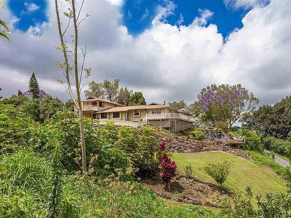 Beautifully set amidst 1.9 rural zoned acres in Kula, this fantastic home offers the best of all worlds. Lush grounds with wonderful native plants and trees surround this lovely home with a flexible floor plan. There's lots of room for extended families or out of town guests! Enjoy sunny decks in the morning that overlook green lawns, a gorgeous waterfall feature and a HUGE patio area for all of your entertaining dreams! A large great room divides the home into 2 living areas. In-laws, friends, teenagers and visitors will all agree; this is a gracious, fun and super flexible home! Everything is on one level except the generously sized upstairs suite and bath with its own small deck. You have time to entertain, space to garden, room to stretch out and a yard to throw the dog's ball. Dine outdoors in the summer and cozy up to the fire in the winter. This home has been lovingly maintained and could soon be yours... OPEN HOUSE this SATURDAY AUG 27, 11:00 to 1:00 pm.