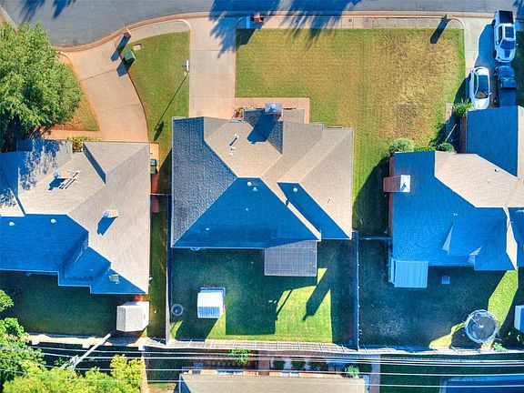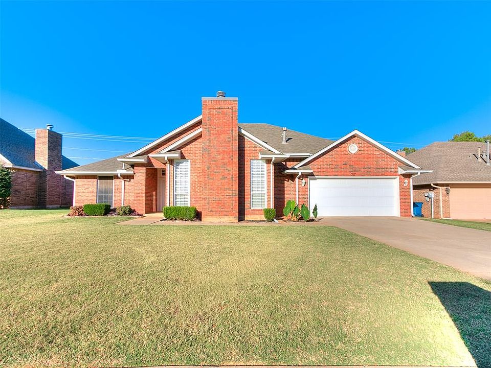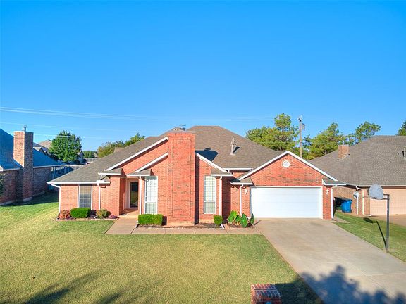 This absolutely gorgeous dream home is move in ready and located on a quiet cul-de-sac in the coveted Copperfield addition of Edmond. This amazing newly painted home features 3 bedrooms, 2 bathrooms, large living spaces and a 2 car garage. Upon entering the front door, you are greeted with beautiful hand scraped hard wood floors leading you into the living room with tall vaulted ceilings, beautiful plantation shutters, an amazing new ceiling fan, a beautiful fireplace with large windows on each side that provide lots of natural light, built in cabinets and plenty of room to socialize! The dining room has a beautiful updated chandelier and a large window viewing your backyard. The kitchen boasts lots of cabinets with ample storage, breakfast area and another large window view of the back yard making this home perfect for entertaining and hosting large holiday events. The primary suite; which is located just off from the garage entry invites you to a true spa like retreat experience with a jetted tub, walk-in shower, double vanity with his and hers walk-in closets. The conveniently located large laundry room is just off from the primary. The split floor plan has a second and third bedroom with large closets and ceiling fans with brand new carpet. The bedrooms are separated by the second bathroom with ample storage making the home a perfect sanctuary for your family to reside in! The amazing outdoor covered pergola offers an outdoor living area providing sun relief and year round protection from the elements. Storage shed stays with the home. Home also includes an in ground storm shelter conveniently located in the garage.