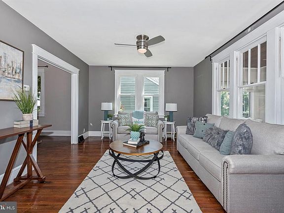 Simply charming 3 bedroom/1 bath cape cod with gleaming hardwoods, large living + dining rooms, spacious kitchen with tin ceiling + desk area, updated bath, large enclosed front sun porch + detached garage. You~ll be ready for Fall entertaining in the beautiful fenced back yard with covered porch, shed, play equipment + outdoor fireplace. Hurry on over!
