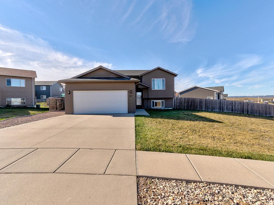 Welcome to this spacious and beautifully maintained 4-bedroom, 2-bath home perfectly situated on a desirable corner lot in a quiet cul-de-sac in Box Elder. Offering comfort, convenience, and charm, this property is ideal for those seeking a modern home with thoughtful updates and a touch of outdoor beauty. Step inside to an inviting open-concept floor plan that seamlessly connects the living, dining, and kitchen areas—perfect for entertaining or enjoying family time. The home features newer appliances and a freshly updated bathroom with stylish finishes. Fresh interior paint gives the entire home a bright, move-in-ready feel. The spacious kitchen provides ample counter space, modern cabinetry, and direct access to the redone deck, perfect for grilling or relaxing on warm South Dakota evenings. The lower-level family room offers flexibility for a home office, play area, or media room. Outdoors, you’ll find a beautifully landscaped yard with a variety of productive plants, including raspberry bushes, apple trees, currant bushes, and cherry bushes—a gardener’s dream! The two-car garage provides plenty of room for vehicles and storage, while the large driveway offers additional parking space. Located just minutes from Ellsworth Air Force Base and I-90, this home offers quick access to Rapid City, schools, shopping, and restaurants—making daily commutes and errands a breeze. With its combination of modern updates, great location, and charming outdoor space, this Box Elder home is ready for its next owner to enjoy. Don’t miss your opportunity to make it yours—schedule a showing today and experience all that this beautiful property has to offer! Listed by Steph Holdinghausen with Selling 605 Realty 605.484.6781