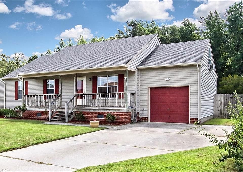 This homey 4bedroom 2 bath ranch located on a cul-de-sac features a large fenced in back yard with privacy fence and deck. The eat-in-kitchen has a pass through bar that opens to the living room and has sliding doors that open to large deck. Master bedroom has walk-in closet and master bath. The 4th bedroom is located in the FROG which can also be used as a home office. The roof has been replaced in the last month and the inside and outside of the home has new paint. This home is conveniently located near shopping, restaurants, golf and the Veteran's bridge and interstate for easy commute anywhere in Hampton Roads. You'll want to move quick as this won't last.