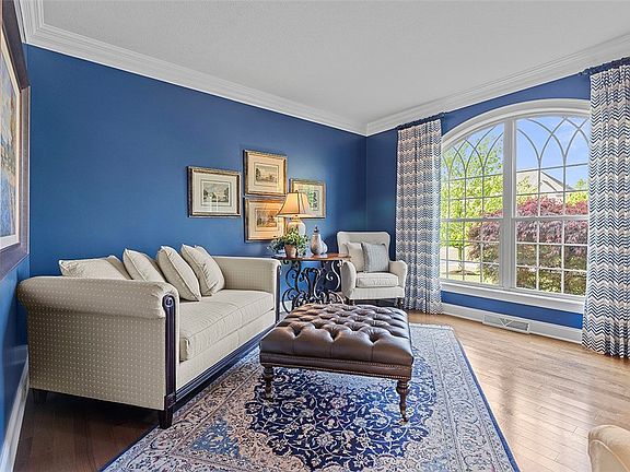 This Benjamin Marcus custom home blends luxury and craftsmanship. The open-concept layout features hardwood flooring, a two-story great room with a dramatic fireplace, and a sunroom off the gourmet kitchen with granite countertops, premium finishes, and ample cabinetry. A private first-floor study offers a great work-from-home space. Upstairs includes spacious bedrooms, a second-floor laundry room, and three full bathrooms with granite finishes. The finished walk-out lower level provides a full bath, a second fireplace and versatile space for entertaining or relaxing. Enjoy the covered deck with a stone fireplace and a rare full-size backyard putting green. Additional features include a four-car attached garage and a prime Peters Township location near shopping, dining, and Route 19.