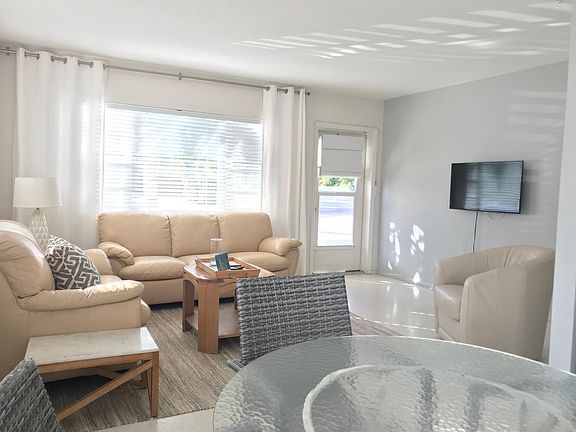Rent a bungalow on the beach -- Apartment style housing at a Beach Resort located on Casey Key. Our housekeeping policies were just updated for the virus. Hunker down in place and use our private beach and waterfront on the Sarasota Intracoastal Waterway. Swim, fish, sunbathe, go shelling, kayaking, bicycling, etc and get a mental health break. We are here for our community as essential service staff needs water therapy, and families need time outside in the sun. This Deluxe One Bedroom is spacious and perfect for a family of 3-4 people. Room has a full kitchen, dining table area and living room with pullout couch. Bedroom has two queen beds. Facing the Venice Inlet is your own screened in patio with table plus great water views of the Intracoastal. One parking spot provided just outside your door, and your room is 200 feet from our private beach. Rentals can still be dropped off for use at the Resort. Grocery delivery available from Publix and Aldis. Free wi-fi and cable tv. Can pay in 4 installments. Deposit covers deep cleaning fee, disinfectant fee and utilities deposit. Day visitors are limited and must be reserved. Guests expect to abide by CDC's social distancing. Pet fees apply if bringing a pet. Bring your own sheets, towels and detergent -- Use our onsite washer and dryer. Staff on site almost every day and reachable by phone.