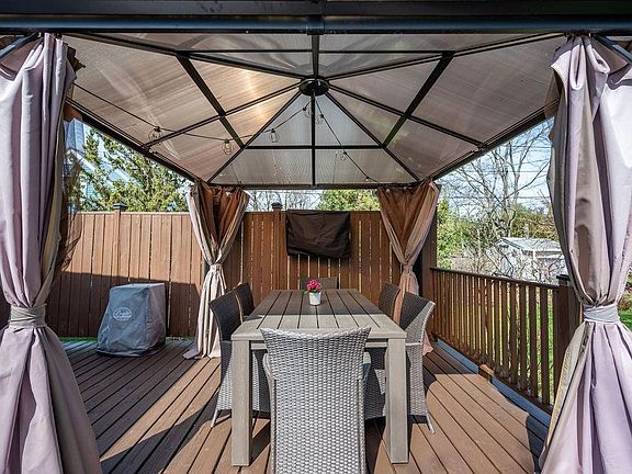 Welcome to this charming 1 and half story home on a beautifully landscaped corner lot, including a gorgeous deck with gazebo and shed for added storage. The home boasts an updated kitchen and both bathrooms (2011). The main living space is very modern and open concept. Both the front and rear entry are spacious with lots of room for coats & shoes. Upstairs there are two spacious bedrooms. The lower level is fully finished with a rec-room and 2nd bath including a shower. Home was newly insulated in 2011, the roof was done in 2016, central air in 2017. Hydro is 110/month equal billing, heat is 60-170/month (includes HWT rental).