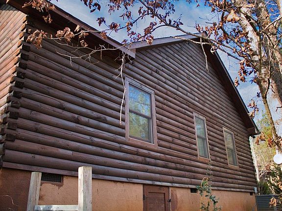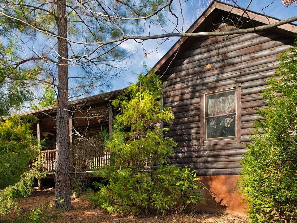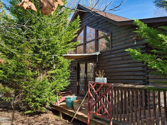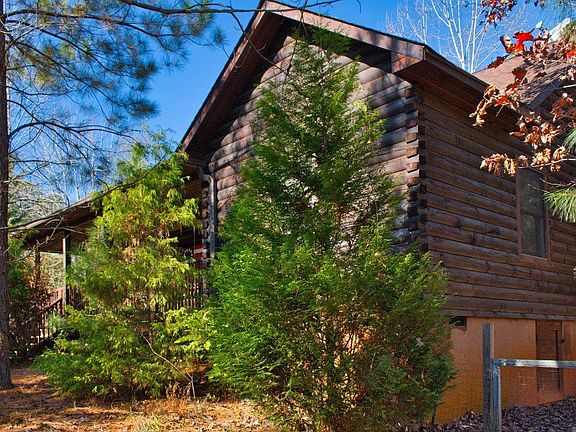 317 Chocolate Drop Circle is a 1,450 sf log cabin offering a deep sense of privacy. This log home in the western hills of North Carolina is sitting on 1.55 acres, totally surrounded by trees and large vegetation...it's incredibly private. Built by the owner himself (he used to go around the country building churches), the cabin is well constructed and sitting on near-level land. The exterior photos simply don't do justice to this 2 bed / 1.5 bath log cabin - being surrounded by vegetation makes it difficult to photograph. The land it sits on gently rises above the paved road, a hill-top of sorts, with plenty of near-level land to take advantage of. There's fencing, a small decorative pond (maybe suitable for Koi?), garden paths, a fire pit, and a lovely mixture of plantings on this corner lot. The detached carport is convenient to the back entrance which features a screened porch decorated with baskets, while a deck (complete with 'sunsetter' awning) wraps around to the covered front porch. On the back of the cabin, the access door to the crawl space opens to a concrete floor underneath - great storage potential! Just inside the back entrance is a mud room / utility room for the furnace, washer & dryer and water heater. You'll find hardwood flooring of solid bamboo in a diagonal pattern throughout most of the home. A wood stove in the living area is waiting to add extra warmth and ambiance to chilly evenings in our four season climate. Open to the living area is a well-appointed kitchen with a charming farm sink and plenty of counter space, covered in granite. All the appliances convey (as do the antique pieces on the screened porch.) The great room, with its vaulted ceiling, also features a small loft, accessed by a circular staircase. The loft is too small for an additional bedroom, but the kids/grandchildren will love it (or maybe it's more storage?). The two bedrooms share a bathroom in the center (featuring a Safe Step tub/shower combo), with an additional powder room off the great room. A few pieces of furniture convey with this home. What is shown in the photos are the pieces to be sold with the house. The cabin features a central air & propane furnace system, though with this climate, you may well have the windows open half the year! Water is supplied from a deep, private well offering excellent quality water. Waste is handled by a septic system.