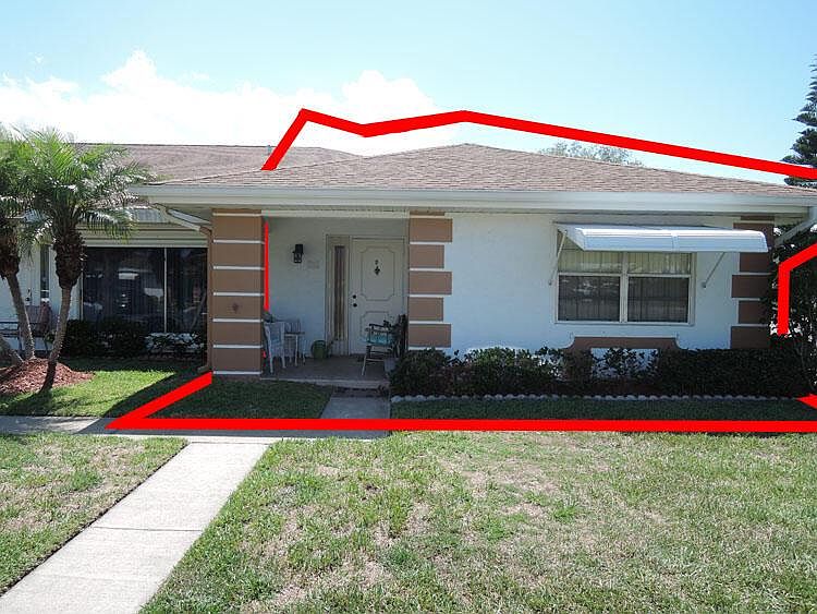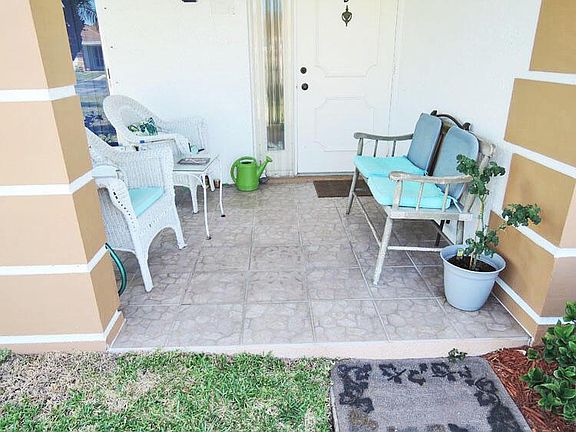 Popular corner condo in this well maintained gated senior complex is situated on the corner of 2 streets. Lots of mature landscaping around this unit that offers privacy from FL RM & open patio. Sellers have made these recent updates: FL RM new 4 yrs, water heater 3 yrs old, Fridge 3 yrs old, disposal 2 yrs old, & dryer 2 yrs old. Vanity-sink changed in guest bath, storm door at entry, tiled foyer, kitchen & FL RM floors. Carpeting in all other rooms. Drop down shutters on all windows & accordion shutter on slider. Open front porch faces east & great place to visit with neighbors. Sellers are packing so therefore guest bedroom used as storage area presently. Well maintained end condo that the sellers will be leaving to move closer to family. Sellers state price is firm. HURRY CALL NOW !!!
