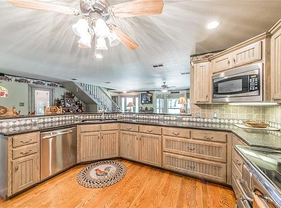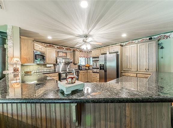 Nestled among 21 acres of beautiful trees and a private lake, this home boasts expert craftsmanship, energy efficiency, and a most thoughtful design. Premium vintage-style Heartland appliances, granite counter tops, and custom cabinetry set the tone in the spacious kitchen. Oak flooring throughout home; ceramic tile in baths and utility room. Double closets in each spare bedroom. 1,800 SF shop with living quarters. More info in supplements.