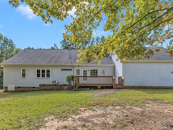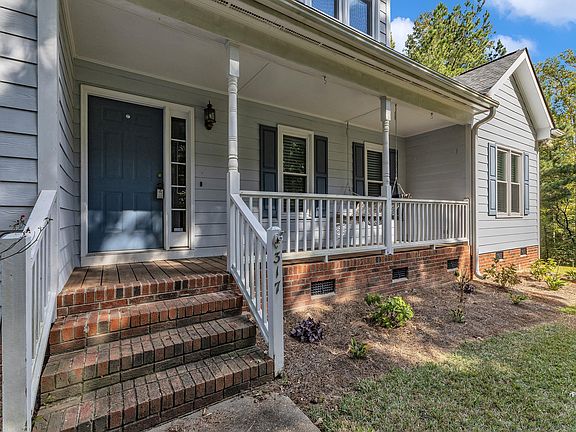 So Much Flexibility in this 2695 sq/ft 4 bedroom 3 bath home tucked away on a beautiful 2.34 acre private cul-de-sac lot. Downstairs features the family room with a cozy fireplace and hardwood floors, the primary bedroom and a large walk in closet. an updated, gorgeous ensuite bathroom featuring a double vanity, tile flooring, and a large designer walk in tile shower with dual shower heads Two more spacious bedrooms and a bath are on the main level. The kitchen has lots of cabinets, a pantry and a sunny breakfast room. The dining room has hardwood floors and a bay window. The upstairs offers many possibilities with the 4th bedroom with a large walk in closet, a full bath. small kitchenette area with a sink, a large bonus room with an alcove and 2 additional rooms that could be an office, craft room, or whatever you decide. The upstairs is filled with built ins and so much storage. The space would be perfect as a second living area for multi-generational living. The outdoor space will not disappoint. Enjoy the front porch swing, sit on the back deck overlooking the backyard with mature oak trees, or take a walk in your woods. The location is close to everything you need. Minutes from Hwy's 42 and 70, shopping, restaurants and downtown Raleigh. Recent upgrades include- 2023: energy efficient windows and hot water heater installed, 2022 replaced downstairs HVAC, 2021: Primary bathroom remodel and upstairs HVAC replaced and 2019 the roof was replaced. All this and it is listed below recent (10-4-2024) appraisal! Sellers are offering a $5000 carpet allowance.