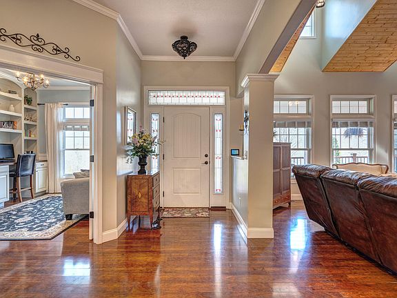 Peace & serenity await! This custom built home is the perfect blend of space and style, highlighted by cozy accents. The main level is bright & open with views of the mountains from every window. Entertain in the kitchen that looks onto the great room with vaulted ceilings & a stone fireplace. Adjacent office space provides built-ins & a generous layout for all your needs. Retreat to the primary suite to relax & enjoy a soak in the jetted tub. Bedrooms 2 & 3 tucked into the back of the home & are adjoined by a Jack-n-Jill bathroom for privacy. The walk-out basement has a rec room, home theatre wired for surround sound, ample storage, plumbed for an additional bath & plenty of room for a studio/workshop. This 10+ acres has trails, fenced garden, mountain views & easy commute!