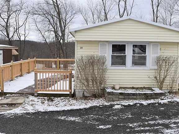 Mobile home features an open floor plan, 2 bedrooms and 1 bath! It has an eat-in area between the living room & kitchen, but there's also room in the kitchen for a table & chairs. New carpet has been installed in living room and 2 bedrooms. Relax on the large front deck. There's off street parking for 3-4 vehicles, depending on size. It's located in quiet, peaceful Forest Brook Mobile Home Park. Conveniently located 10-15 minutes from Cranberry, turnpike, routes 19 and 79. It's hard to find a mobile home with these amenities.