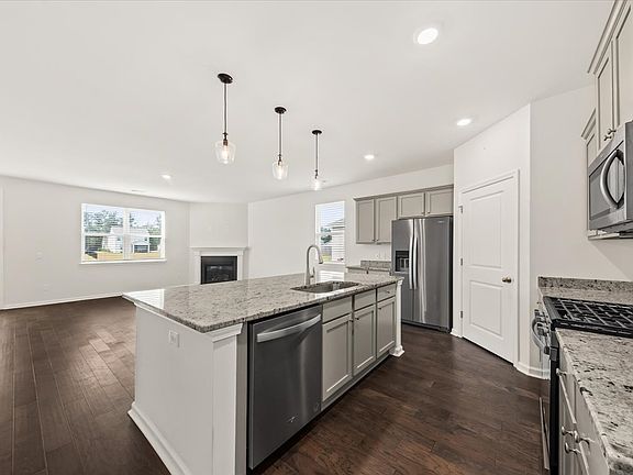 Large islandLuxury wood floorsStainless appliancesBeautiful stone countertopsScreened porchGas rangeOpen concept