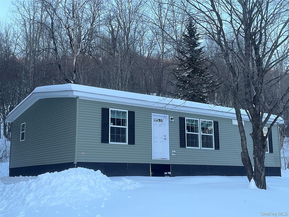 BRAND NEW DOUBLE WIDE MOBILE HOME on beautiful half acre+ of land only minutes to downtown Livingston Manor. Beautiful neutral palette choices and an extremely calming layout. 3 bedrooms and 2 full bathrooms including a primary en suite. Dedicated laundry area. Natural beauty surrounds this home with seasonal views of the Willowemoc River. Public parking and fly fishing access to the Willowemoc only steps away. Come be the first owners of this fine home and start living your charming upstate life today. This parcel provides lots on both sides of the road; offering a creative pallet for endless ideas catering to your desires. Be the envy of this very popular stretch in the trendy town of Livingston Manor. Enjoy fly-fishing, hunting, hiking and all of the outdoor recreation this beautiful area offers. With Roscoe, Parksville, Jeffersonville, North Branch and many other hopping and happening towns nearby like Callicoon and Narrowsburg boasting world class chefs and shops, there will always be something to keep you engaged and proud. Seller will be happy to build you front, back, and wraparound decks for mutually negotiated amount. You and your guests will fall in love w Bethel Woods, ResortsWorld and Kartrite Water Park in Monticello. This area boasts gorgeous golf courses, breweries, coffee shops and wine bars as well as the Beaverkill, Willowemoc and Delaware River's. Schedule your showing now and move in as the weather warms up. Low taxes - also pre-engineered for a drilled well and brand new septic installed