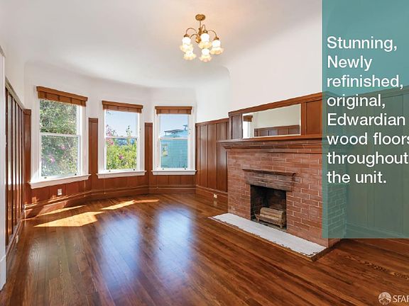 Remarkable Price!!! 317 Douglass Street is a condo in an intimate three unit Edwardian building. Full floor flat with San Francisco charm and character. Coved ceilings, period built-ins, *hardwood flooring throughout AND JUST REFINISHED. Two decorative fireplaces are just a few of the highlights. Beautiful, rich wood paneling adorns our southern-exposed family/dining area. The floor plan consists of 2-3 bedrooms depending on use, a kitchen, with a great pantry. Hallway offers closet, storage and a split bath and water closet. A rear room for either kitchen meals or use as an office facing the rear deck. Common areas include a landscaped garden with irrigation and laundry area. This neighborhood rates right up there as a walkers' paradise. A short stroll from neighboring shops, restaurants, java houses and public transportation, yet just above and out of the commercial business hustle and bustle on a quiet street. ~ *A 75% area carpet rule per CC&Rs(or 75/25% coverage) is a requirement to cover at least 75% of wood floors to help reduce noise. If your unit has wood, tile, or laminate floors and you live in a densely populated area like San Francisco you'll need to cover the majority of your floors with area rugs to keep your neighbors happy. HOA $400 month.