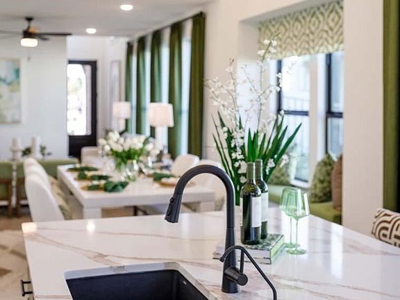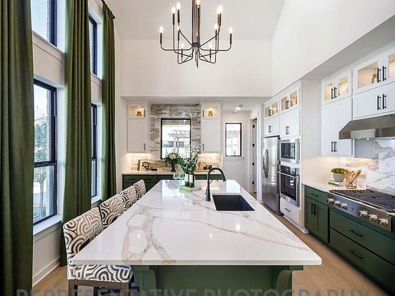 Dining roomNumerous windowsNatural lightLarge islandExtensive cabinetryOpen layout
