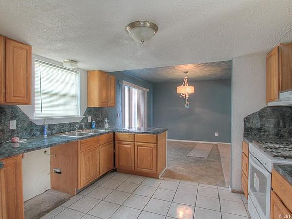 3 Bedrooms, ALL UPSTAIRS, 2 Baths, upstairs. DOWNSTAIRS: Living Room, Family Room/Dining Area, Kitchen, 1/2 Bath, Laundry Room. Large backyard. Sold AS-IS.