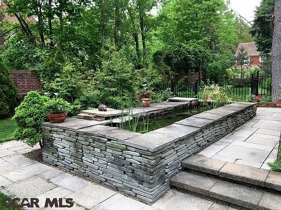 If perfect serenity can be fulfilled by the seamless integration of 1920's architecture extensive landscaping and interior design then this spectacular piece of history in The Highlands is perhaps the model by which all such attempts should be evaluated. The rear brick walls & wrought iron fences define the courtyard inviting quiet contemplation among peaceful water features surrounded by perennial & seasonal plantings. Stone patios provide sun drenched covered seating overlooking the calming koi pond. Within the stone structure featuring slate roofing you will discover original woodwork hardwood flooring crown molding abundance of built-ins dormer window seating and a multitude of architectural details. A spacious dining & living room focuses on a stunning stone wood burning fireplace perfect for entertaining in high style.