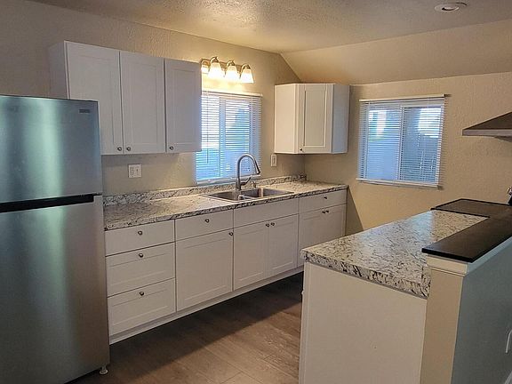 Move in ready! Just refurbished, new carpet, laminant, vinyl through out! New kitchen cabinets and counter tops. 2nd bedroom does not have a built in closet. Large front and rear yard, side yard for your dogs or? Room on opposite side to park your RV behind the fence. Single car garage with washer/dryer and basin. Carport area for additional storage. New garage door, new front door. This would be excellent starter, retirement, rental, it's ready to go! Kitchen appliances include refrigerator and stove/oven glass top unit. Great city location close to all amenities.