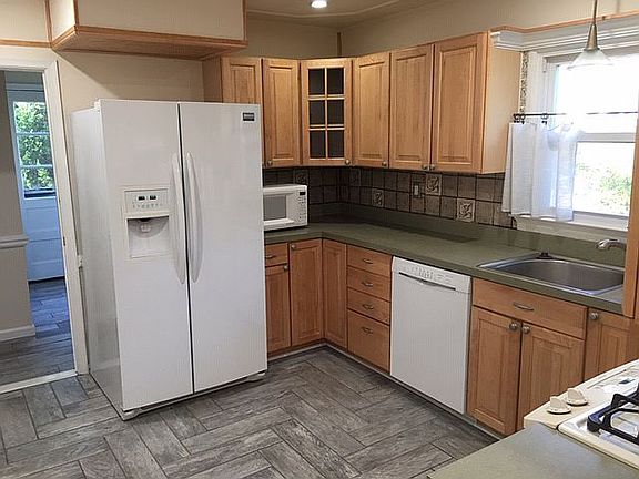 Inside, the kitchen has been recently remodeled and has semi-custom maple wood cabinets, a French door refrigerator, Bosch Whisper Dishwasher, ceramic tile floor, recessed lighting and extensive crown molding and detailed trim work. The eating area also has recessed lighting, crown molding/chair rail, hardwood flooring, and boasts a large bay window overlooking the back yard.