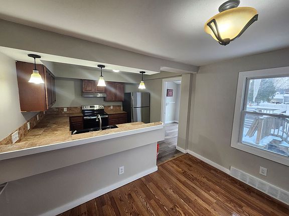 Like new - Large open floor plan. Mud room. Big kitchen. Off of Bailey on Pitcher Hill. Small dog or cat ok. Pet fee is extra. All new stainless steal. Off Street parking. Garage. Tenant is responsible for snow and mowing - could be included for another 100 a month. Lower floor and basement is large and has a lot of room.