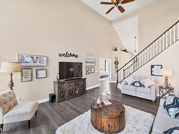 Outstanding one and a half story home ! Gorgeous magnolia home decor! Step into the foyer and feel luxury, beautiful wood flooring, arch doorways, updated lighting, fluted molding and dramatic vaulted ceilings. The family room is comfortable yet elegant with a wood-burning fireplace, flanked by two-story windows that look out to a huge backyard. The kitchen, breakfast room, and family room flow effortlessly to create a wide open floor plan. Nicely designed kitchen boasts stainless steel appliances, 42 inch cabinets, deep sink and a wine fridge. Barn doors add an elegant country feel. The main floor Master suite has a 10 x 11 addition that can be used as a nursery or office space. Luxury master bath has double vanities, soaking tub, oversize shower and walk-in closet. Upstairs you will find three spacious bedrooms with updated full bath. Step outside and enjoy entertaining friends under the covered patio with beautiful lighting and a custom concrete stamped floor. 3 car garage!!