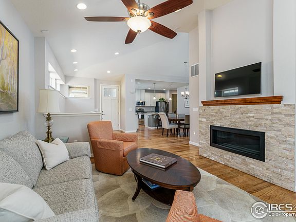 PRICE REDUCED! If you are looking for a beautiful low maintenance ranch style home in Boulder County, this may be the home for you. Original owners kept this stylish home in meticulous condition. Stunning 5" hickory plank hardwood flooring in most of the main level. Beautiful kitchen with slab granite island and stainless-steel appliances. Living room features gas fireplace and walkout to private patio area. Primary bedroom has tray ceiling and gorgeous chandelier and luxury bath leading to large walk-through closet that flows to laundry room. High quality window coverings throughout home. Open staircase takes you to the finished basement with recreation area, family room, additional bedroom, full bath and plenty of storage. Spotlessly clean and neutral, truly a move in ready home. Enjoy this walkable location near Coal Creek Trail, restaurants and shops.