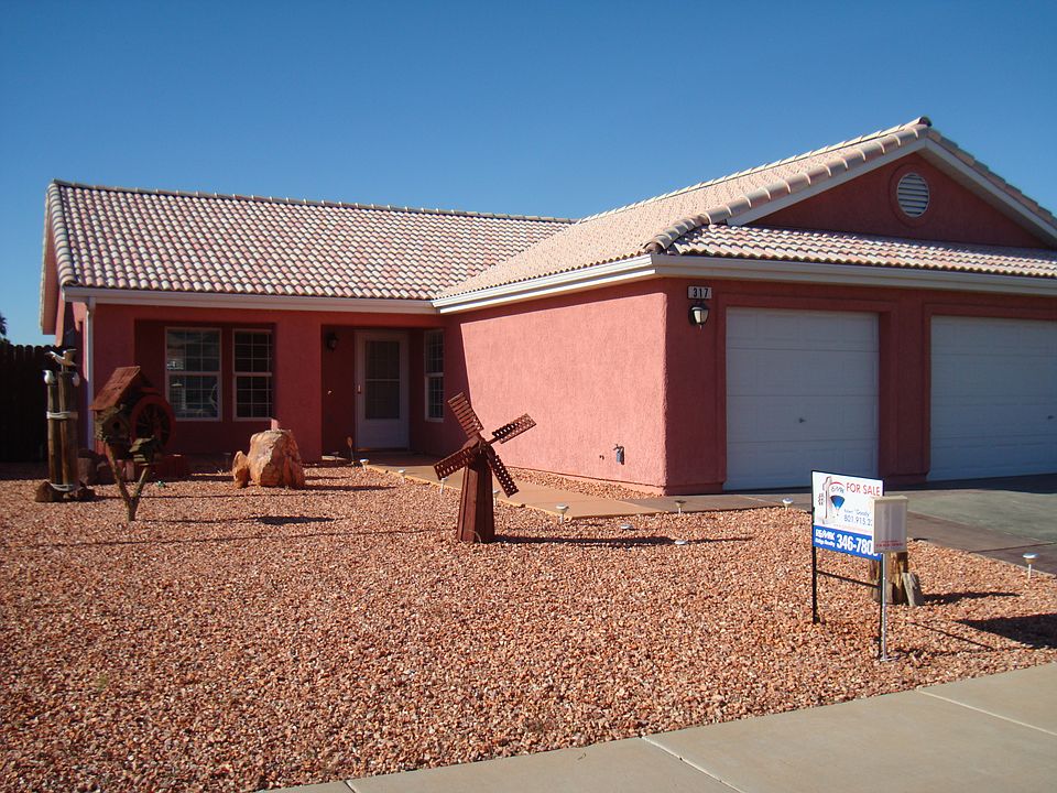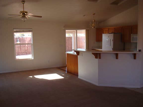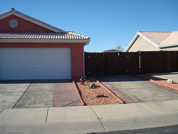 This property has great attributes featuring 3 bedroom, 2 bath with vaulted ceilings. The kitchen sliding door leads to the patio which extends the length of the house. 3 car garage plus RV parking on the side. RV pad includes cleanout and 30 AMP RV Plug. Garage includes shelving and workbench. Low maintenace landscape and NO - HOA. There is lots of closet space, 2nd bedroom even has 2 closets. Washer/Dryer, refrigerator included. Newer AC unit, all appliances and RO filter included, celing fans, tile, carpet and lilnoleum flooring and sunscreens for most windows. PLUS a super sized Tuff Shed with electricity, shelving, and workbenches. Easy access to shopping and to I-15. Additional photos coming soon.