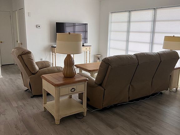 Renovated with New Vinyl Plank Flooring throughout the house. New Appliances. Furnished 2 spacious Bedrooms. 2 bathrooms. Large Den with glass sliding doors, spacious Dining area, Kitchen features breakfast bar area, butcher block countertop. Clean updated and ready for a new full time tenant.