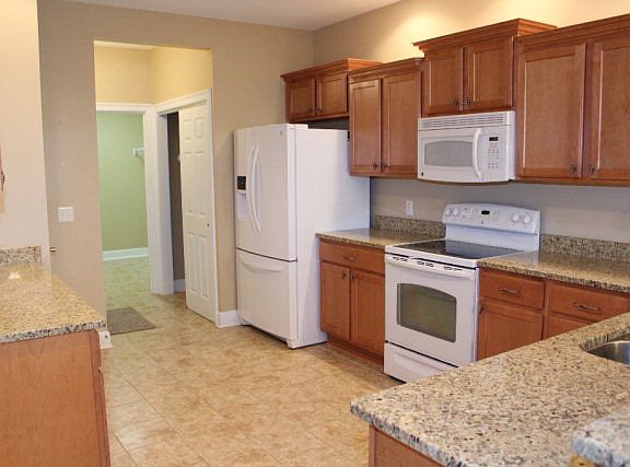 Lovely condominium style home located in a fantastic subdivision with a club house, saltwater pool, fitness center, walking trails, & stunning ponds. This home features 3 bedrooms & 2.5 bathrooms. The master bedroom & master bathroom plus bedroom & half bath downstairs. The home has granite counter-tops, French door refrigerator, dishwasher, vaulted ceilings in family room w/ dining room combination. The 3rd bedroom is upstairs complete w/ a large bathroom. This home has lots of storage.