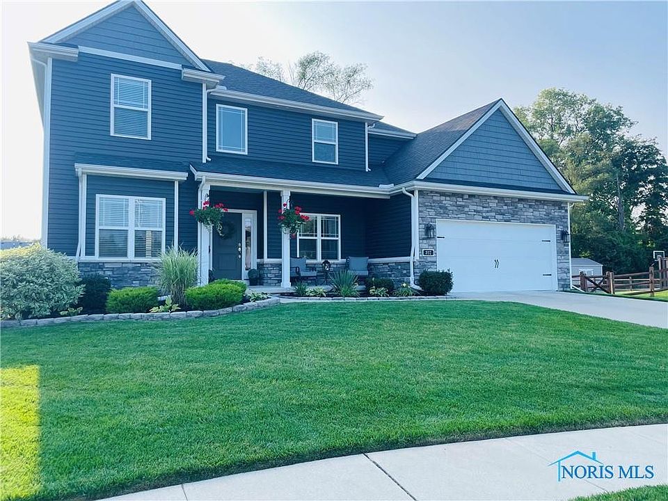 Charming covered porch welcomes you to this well appointed mint condition (Built 2018) home on cul-de-sac fenced yard! Open foyer adjoins private den w/glass French door & formal dining w/trendy shiplapped wall. Great room w/gas fireplace opens to well appointed center island kitchen w/quartz counter/ SS appliances & spacious pantry. Utility room w/custom lockers Spacious Owners suite w/oversized walk-in closet, tiled shower, soaking tub & enclosed water closet.Upgraded tankless water heater/high end Lennox furnace. Recently finished basement plumbed & studded for half bath. Tasteful decor