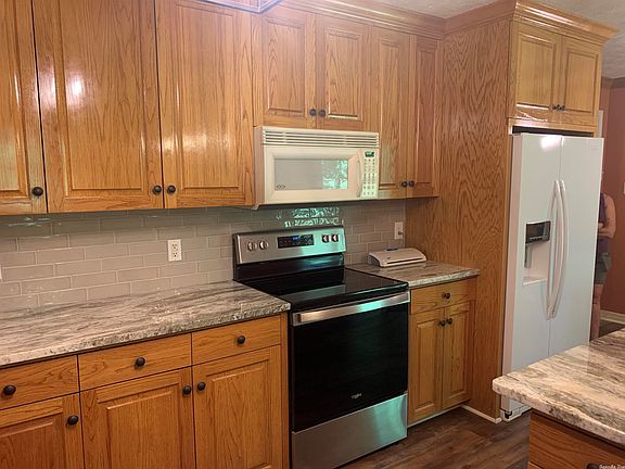 Horse ready farm with barn, pond & cross fencing! 3 stall barn & tack room. RV stg & shop. House is extremely well built with remodeled kitchen, granite counters, rich wood cabinetry, HUGE laundry room with sink, Master bed/bathroom with jetted tub & shower. Safe room in the home! Gas log fireplace, roof 2 years old, new stove 1 yr ago & brand new flooring! Screened back patio. External generator hookup for power outage. Enjoy what mother nature created in this horse heaven and countryside! See agent notes