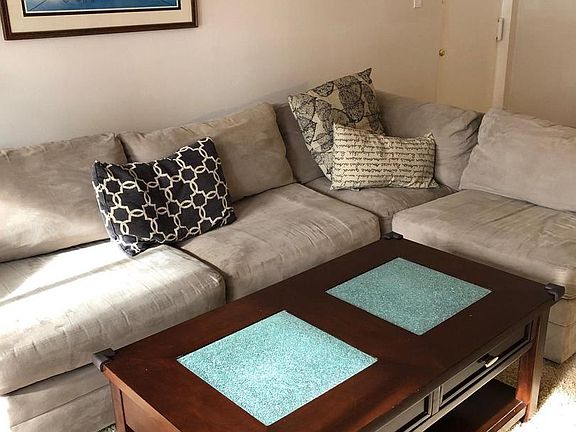This absolutely well cared for unit features lots of natural sunlight throughout! Beautiful light colored floating wood flooring ! Large living room features sliders to private balcony which faces the rear of the building! Handsome updated kitchen one year old with 6 month old stainless appliances - butcher block counters, grouted ceramic flooring, and back splash! Huge bedroom can easily be converted to 2 bedrooms! This bedroom has beautiful exterior doors for lots of sunshine! Washer & dryer in separate laundry room directly next to unit in the building!Each unit has 2 " resident only" parking spaces and 15/20 guest passes! Parking is carefully monitored daily. Location is convenient to colleges, shopping, etc. !
