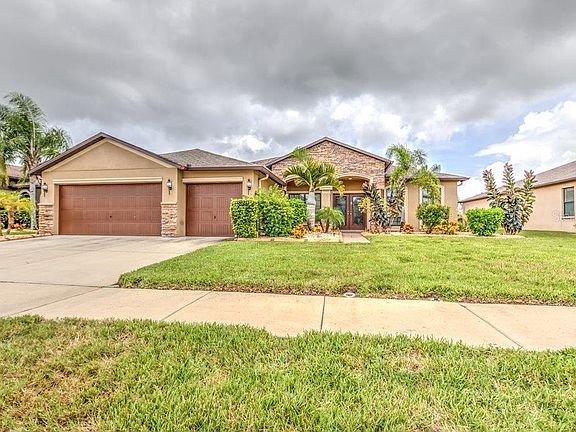 This spacious open floor plan home has over 2,900-sqft of heated living space, features 3 full baths, 4 bedrooms, the master is huge, a bonus room/media room, a breakfast nook, a formal dining room, a great room, a den, and to top it off new pavers added to its 1200-sqft screened-in lanai. You will have plenty of storage with its oversized 3 car garage. As you enter, your are greeted with a spacious foyer, modern paint, ceramic tile flooring, laminate wood flooring, 5-inch base boards, crown molding and contemporary light fixtures. The beautiful kitchen includes stainless steel appliances, cabinets with glass inserts, new back splash, walk in pantry and a wine cooler. Relax in your huge state-of-the art Jacuzzi! From the Lanai you will enjoy to view of the over-sized pond. Community amenities include swimming pool & spa, state of the art fitness center, basketball courts, jogging/walking trails, covered playground and fishing docks. Home Warranty transferrable until 6/2018. Harbor Isles is close to Tampa, Bradenton, MacDill AFB, and is centrally located to I-75 and beaches.